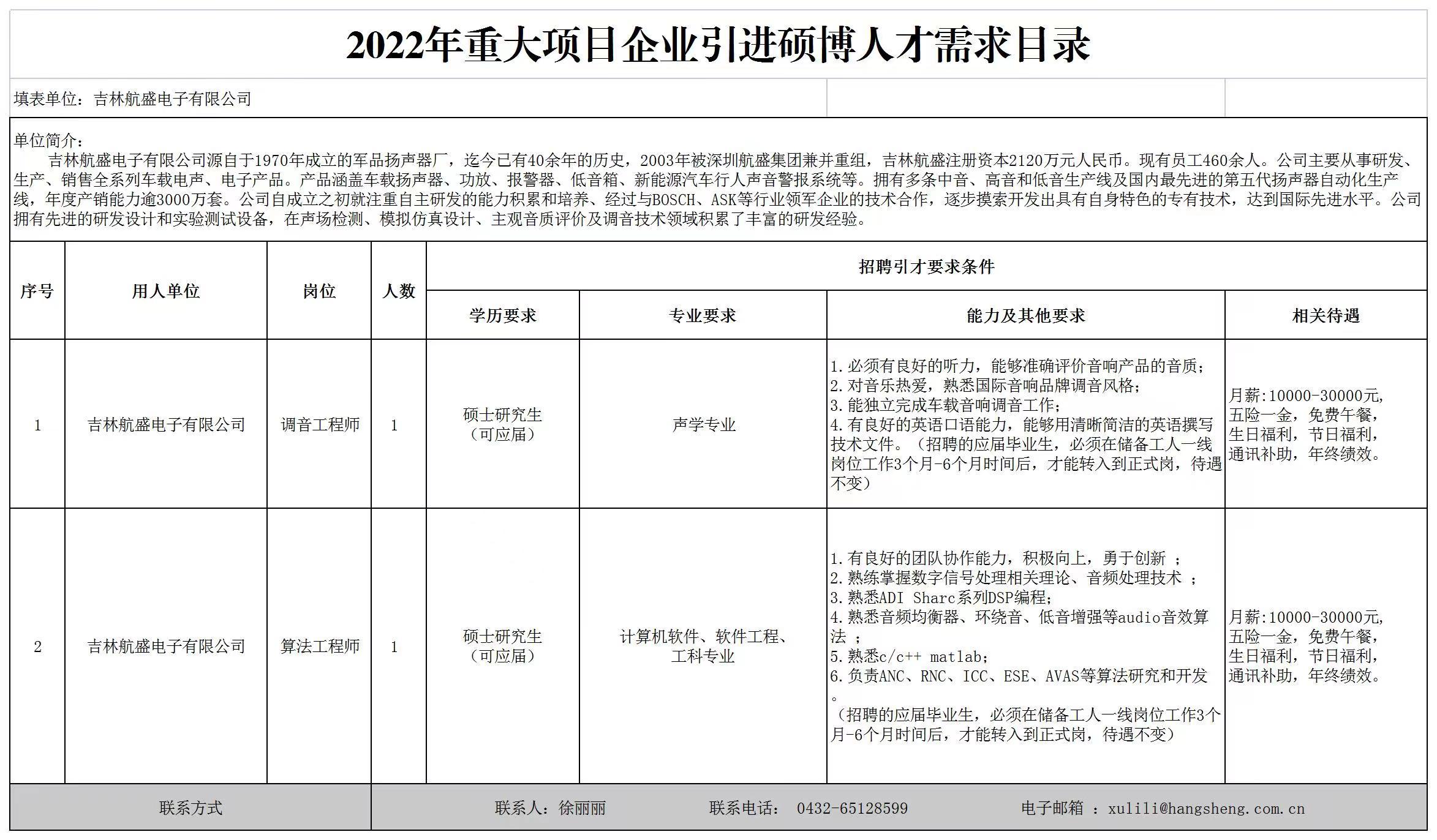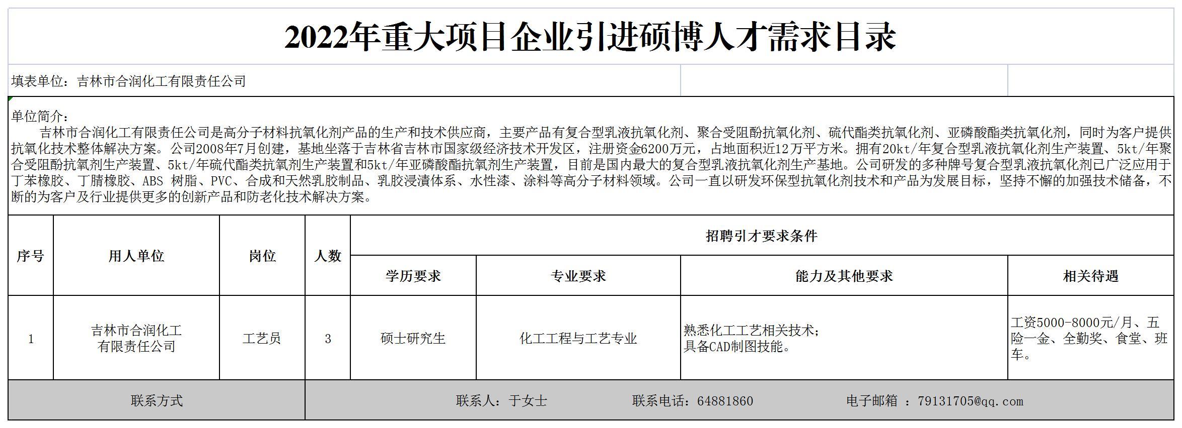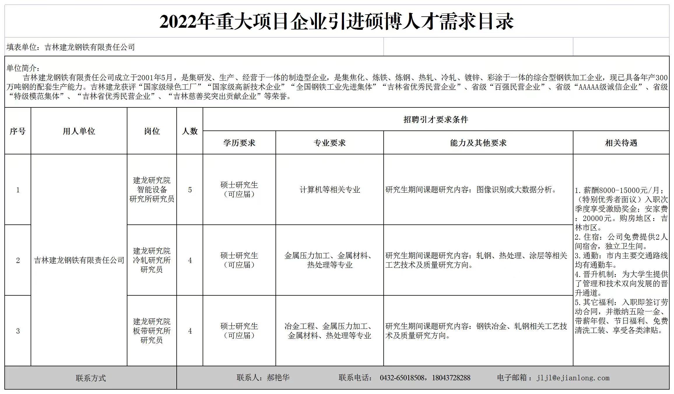 为深入实施人才强市战略,引进集聚一批重大项目急需紧缺博士、硕士,全力推进创新创业高地建设,为推动全市重大项目企业高质量发展提供有力的人才支撑和智力保障,现就2022年吉林市重大项目企业引进博士、硕士有关事项公告如下: