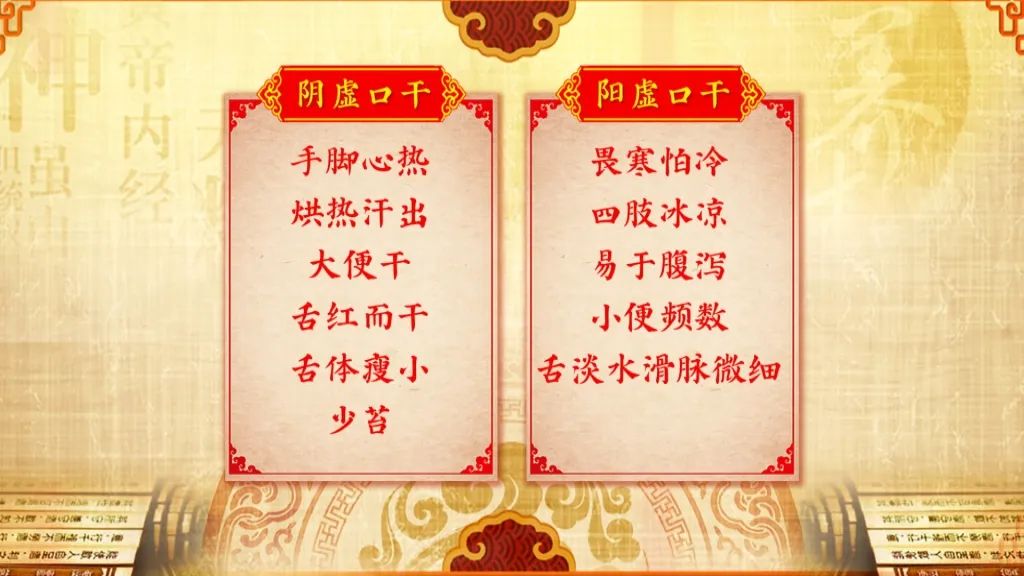 除了眼干以外,口干也是一个常见症状,其中有一种口干,即使喝很多水也不能解渴。本期专家告诉我们,导致口干的原因除了有阴虚,还有阳虚,阳虚导致的口干是喝水解决不了的。针对口干的困扰,专家会如何化解危机呢?千万别错过今晚的节目。