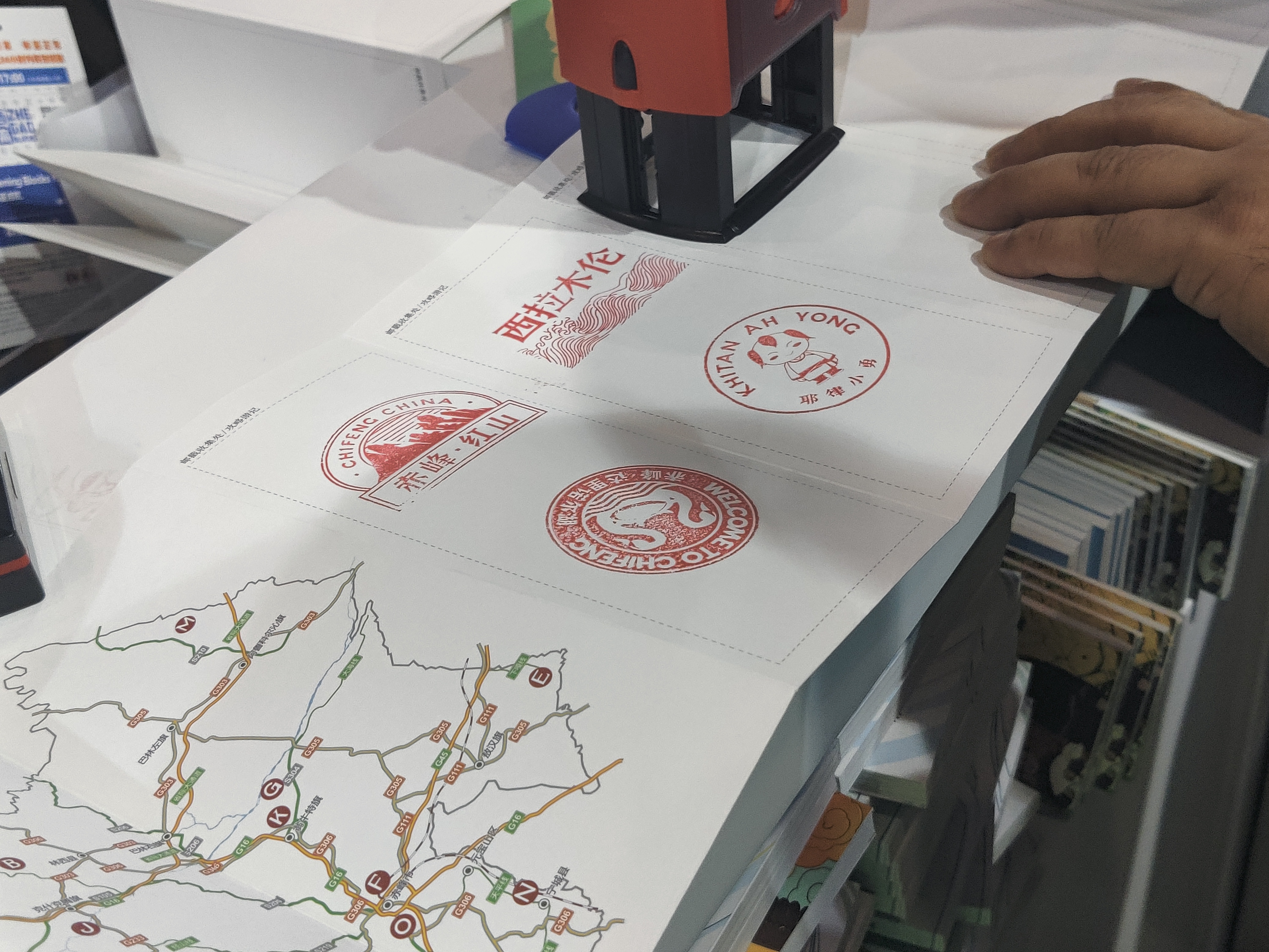 在展览会现场,草原小勇成功吸引了大量的消费者,火爆的场面也成为本次展览的一大亮点。辛兆鹏笑着说道:“在这次展览会现场,我们以赤峰的旅游景点为切入点去设计了一些图章,游客每去一个地方就可以获得一个打卡签章,这种打卡方式能够满足消费者的收集欲,同时也能很好的推介赤峰的文化和旅游知识,可以说是一举两得。”