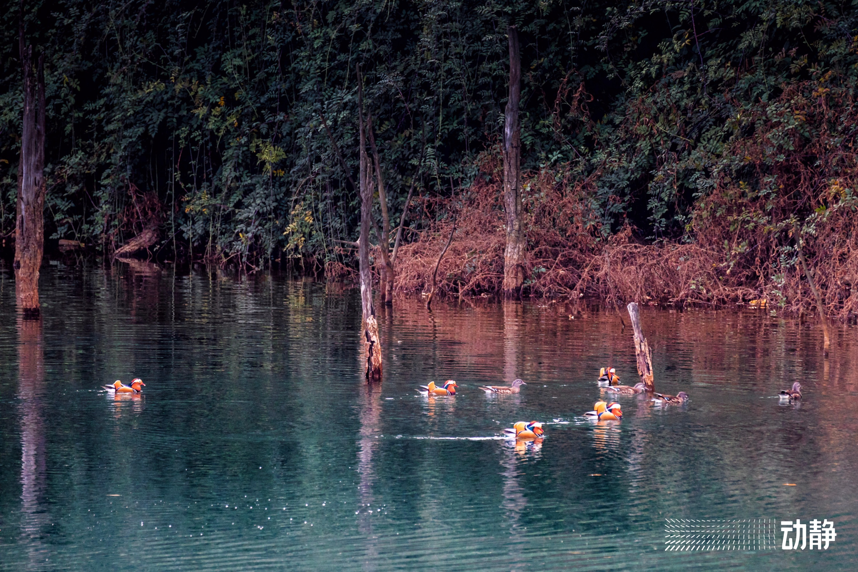 11月初,位于六盘水市钟山区双戛街道中箐村的天生湖景区迎来了一批特殊的“游客”, 约11只野生鸳鸯在湖里戏水玩耍。