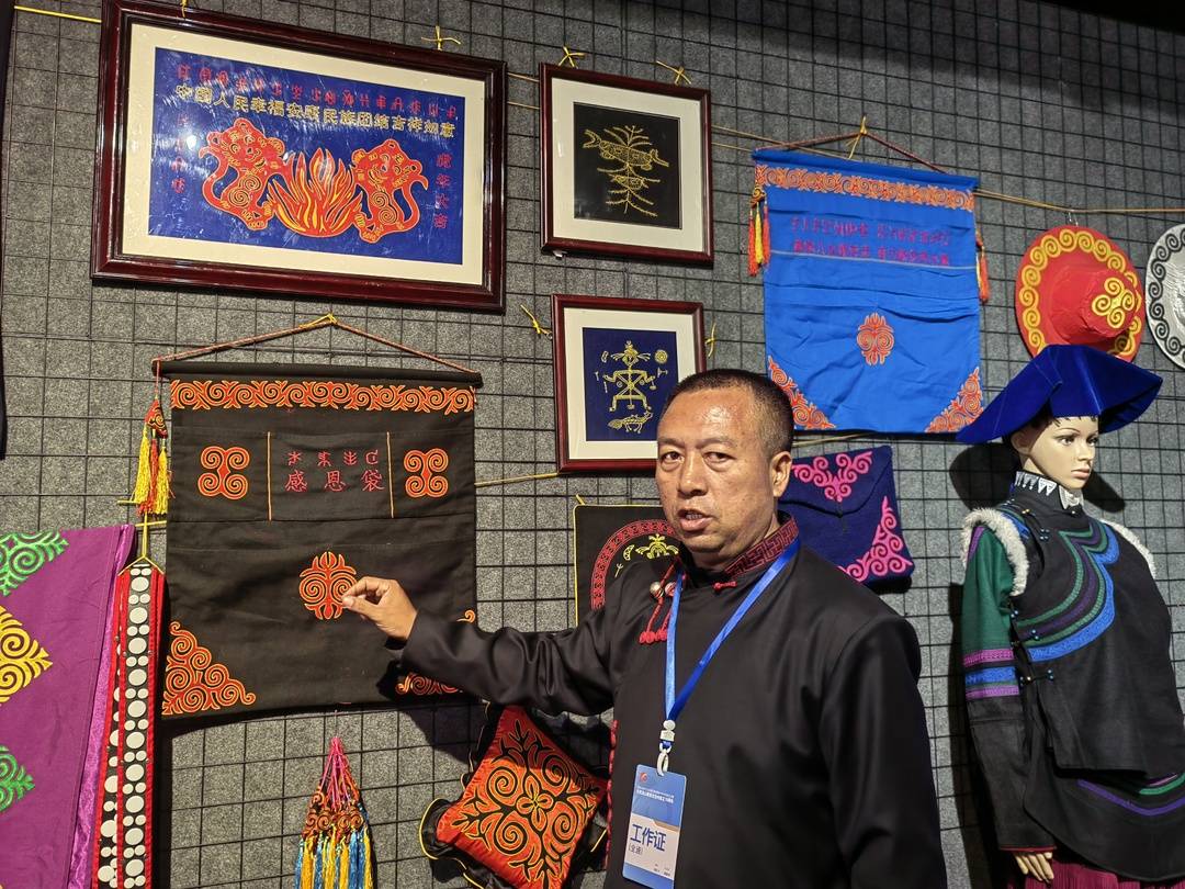 一路走来,以黑、红、黄三色为主的彝族漆器、精美的彝绣产品和手工艺品、色彩艳丽的摩梭服饰、形态各异的绿陶艺术品、古朴大方的传统茶具……让人目不暇接。