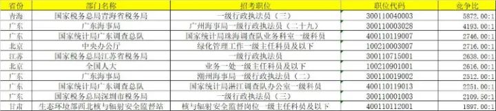 竞争最激烈十大职位中,有一半来自广东,有两个来自北京。