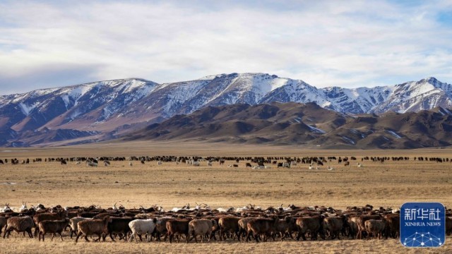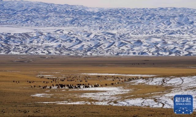 近日,随着气温渐降,新疆塔城地区裕民县的牧民已逐步转场至深山冬季牧场。冬季牧场,是草原游牧地区牧民为畜群所选的防寒避风的地方,一般所选的地方都是环形山谷、盆地等凹陷地区的向阳面,既能防风,又有阳光照射。巴尔鲁克山是裕民县重要的冬季牧场,每年约有24万头(只)牲畜在这里越冬。雪后初霁的巴尔鲁克山,牧草秋黄,牲畜悠闲觅食,一幅草原牧歌图徐徐展开。