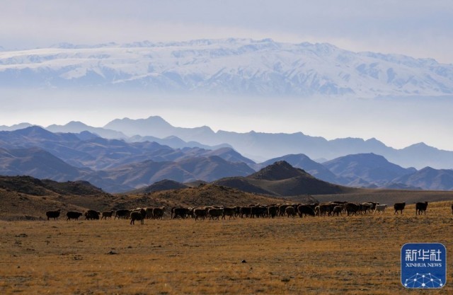 新疆裕民县巴尔鲁克山冬季牧场牧歌图景(11月4日摄)。新华社发(陈双喜 摄)