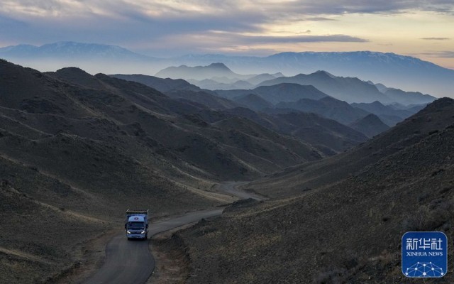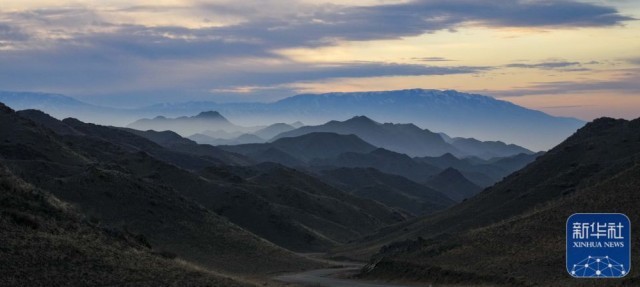 夕阳下的新疆裕民县巴尔鲁克山冬季牧场(11月4日摄)。新华社发(陈双喜 摄)