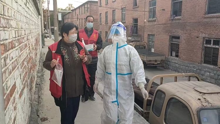 刘持静和齐可君与医护人员一起上门入户做核酸。
