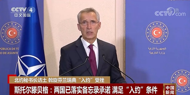 斯托尔滕贝格3日与土耳其外长恰武什奥卢召开联合新闻发布会。斯托尔滕贝格说,他与芬兰及瑞典领导人进行了会谈,芬瑞两国为落实在北约马德里峰会前达成的三方备忘录采取了重大而具体的行动,加强了与土耳其合作打击恐怖主义的力度,并且解除了对土耳其的武器禁运。他对此表示欢迎,称是时候让芬兰和瑞典加入北约了。