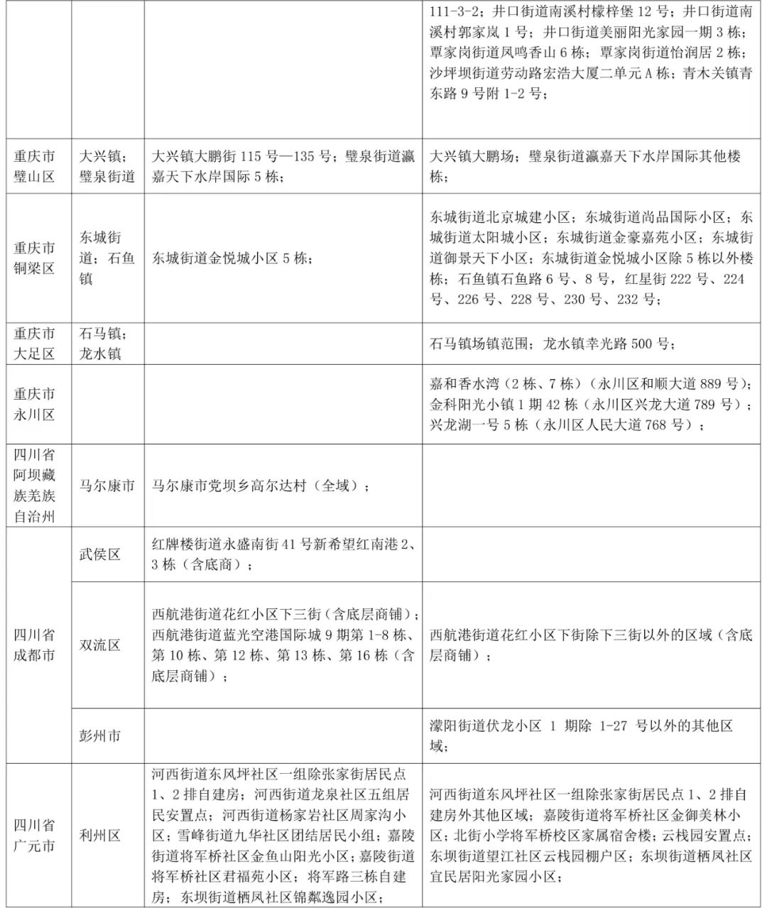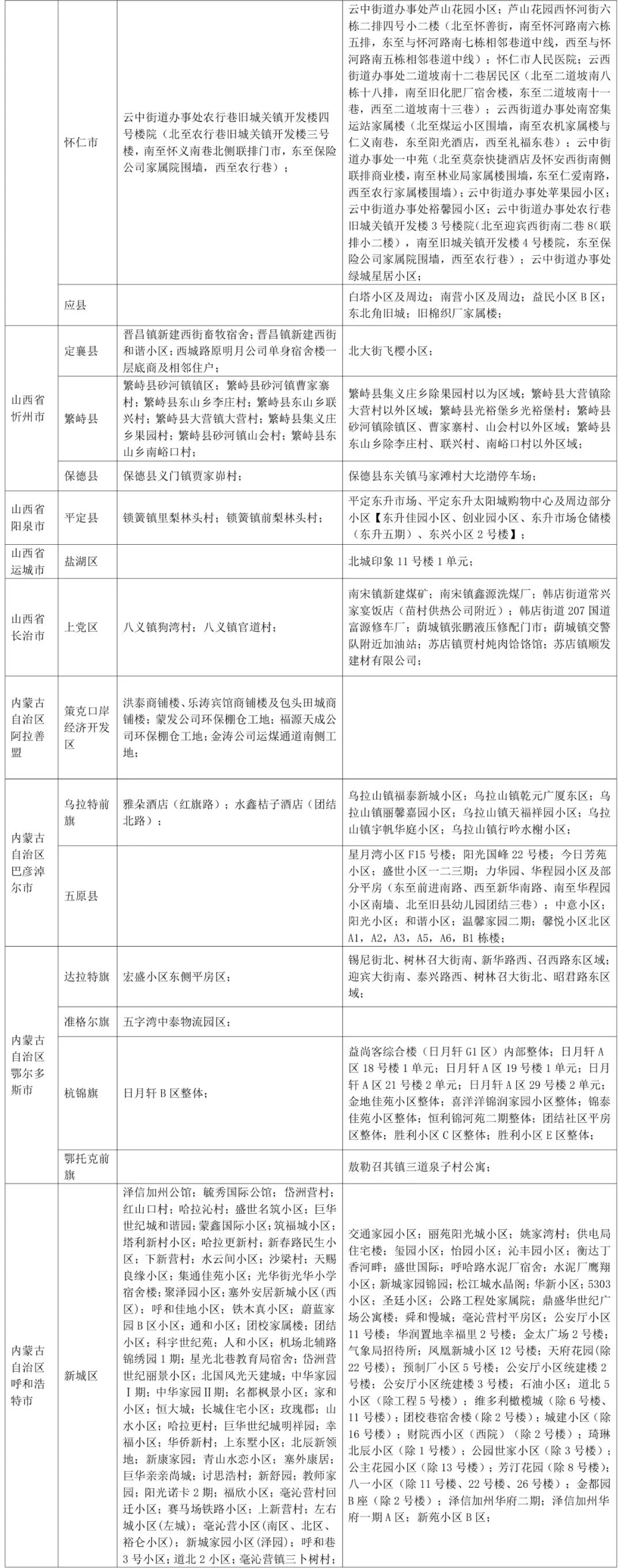 备注:已公布的中高风险区所在县(市、区),不再逐一列举轨迹涉及的具体地点。
