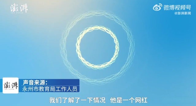 据澎湃新闻报道,11月4日,永州教育局工作人员回应表示,男子是网红,冒充教师拍视频,已报警。