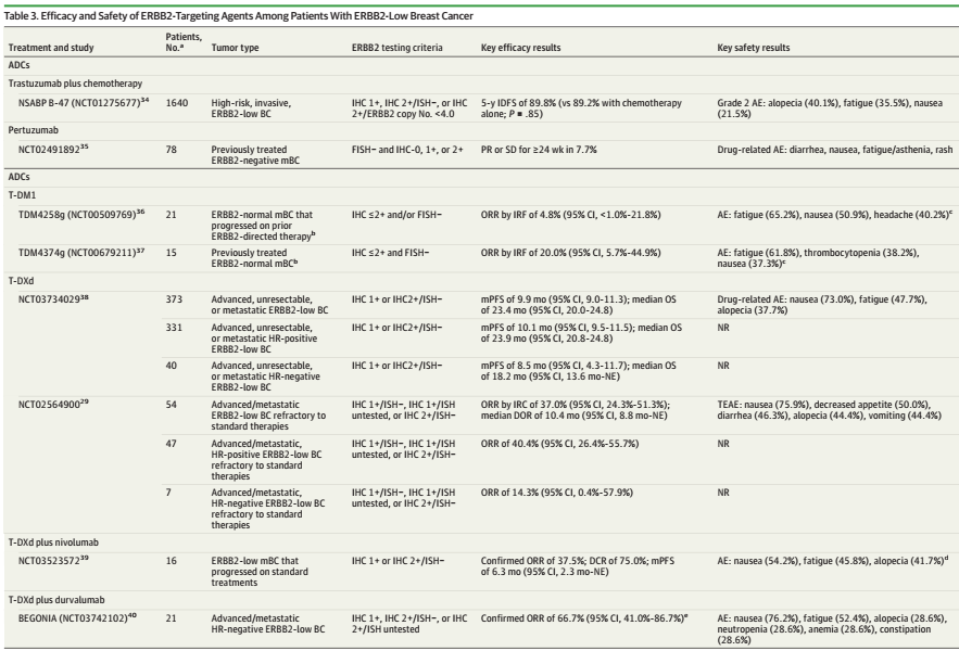 表3.抗HER2治疗药物在HER2-low乳腺癌中的临床研究进展
