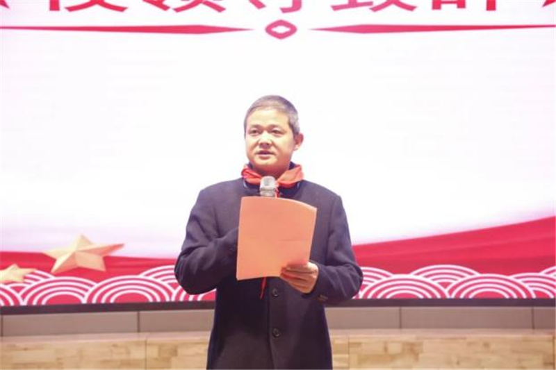大雁塔小学西沣分校执行校长朱隆为本次活动致辞,他希望少先队员们要树立远大志向,勤奋学习、快乐生活、健康成长,早日使自己成为有理想、有道德、有文化、有纪律的社会主义事业的接班人。同时,也希望辅导员一如既往,做好学生的引路人,把爱心献给孩子,把智慧献给红领巾事业,做少先队员最亲密的良师益友,齐心协力,共同开创学校教育工作的新局面。