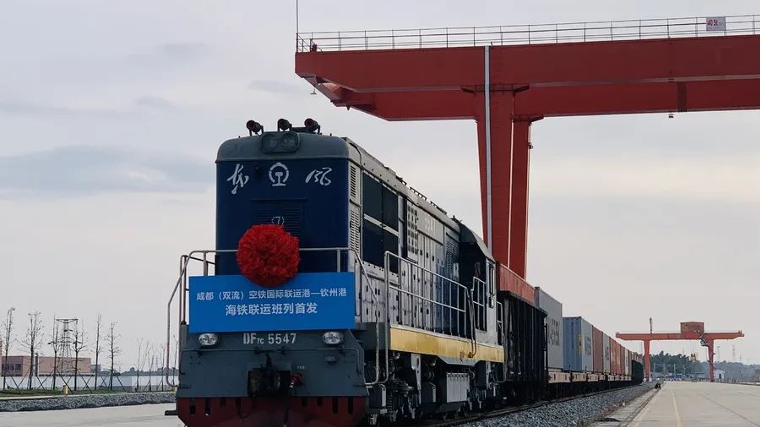 △ 从成都开往广西北部湾港的西部陆海新通道班列。