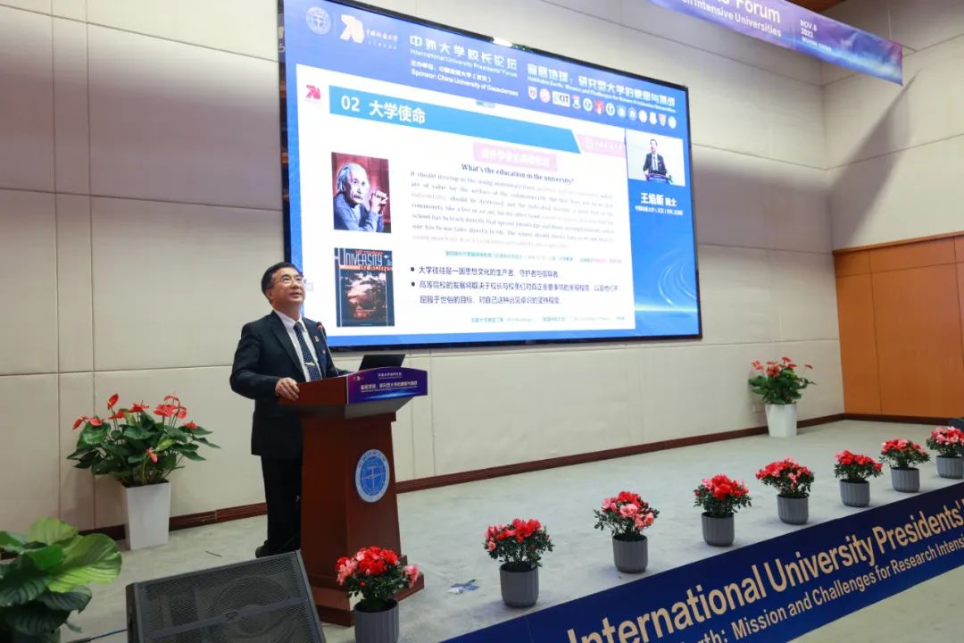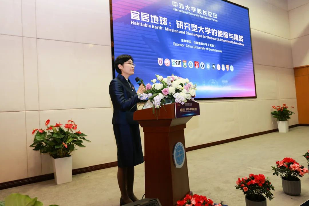 中国地质大学(武汉)党委书记黄晓玫教授对参加本次中外大学校长论坛的嘉宾表示欢迎。她说,当今世界正处于大发展大变革时期,人类创造了空前的繁荣与文明,但是能源资源短缺、气候变化、环境污染、重大灾害等一系列全球性问题,是全人类共同面临的风险与挑战。中外大学校长论坛是大学精神和创新思想的交融对话,分享智慧、凝聚共识的互动平台。此次论坛汇集中外相关领域顶尖专家学者,共同探讨研究型大学改革发展等重大课题,对于大学更好地肩负起推动全球可持续发展、共建人类命运共同体的责任与使命具有重要而深远的意义。她表示,中国共产党第二十次全国代表大会擘画了中国式现代化的伟大蓝图,中国将以建设“人与自然和谐共生”为特征的现代化,推动构建人类命运共同体。中国地质大学(武汉)愿以此次“中外大学校长”论坛为契机,与世界各地的高水平大学互学互鉴、协同创新、共同努力、积极作为,为实现高等教育高质量可持续发展、构建人类命运共同体作出新的更大的贡献。
