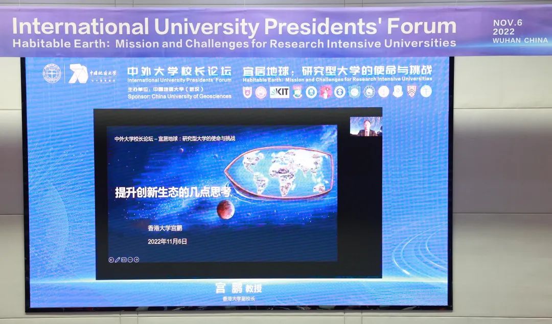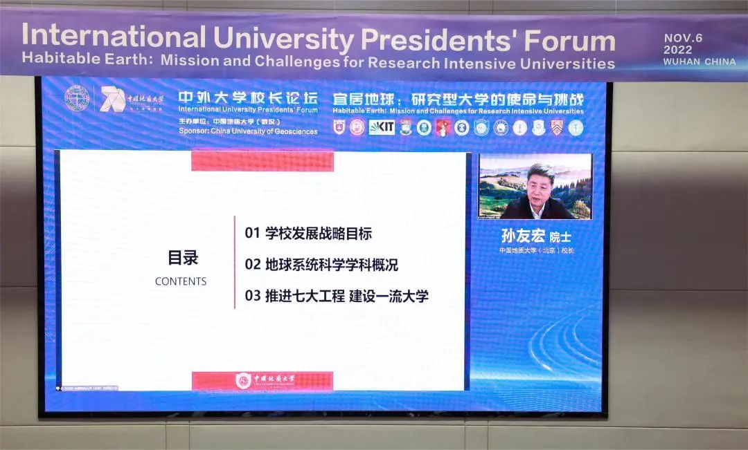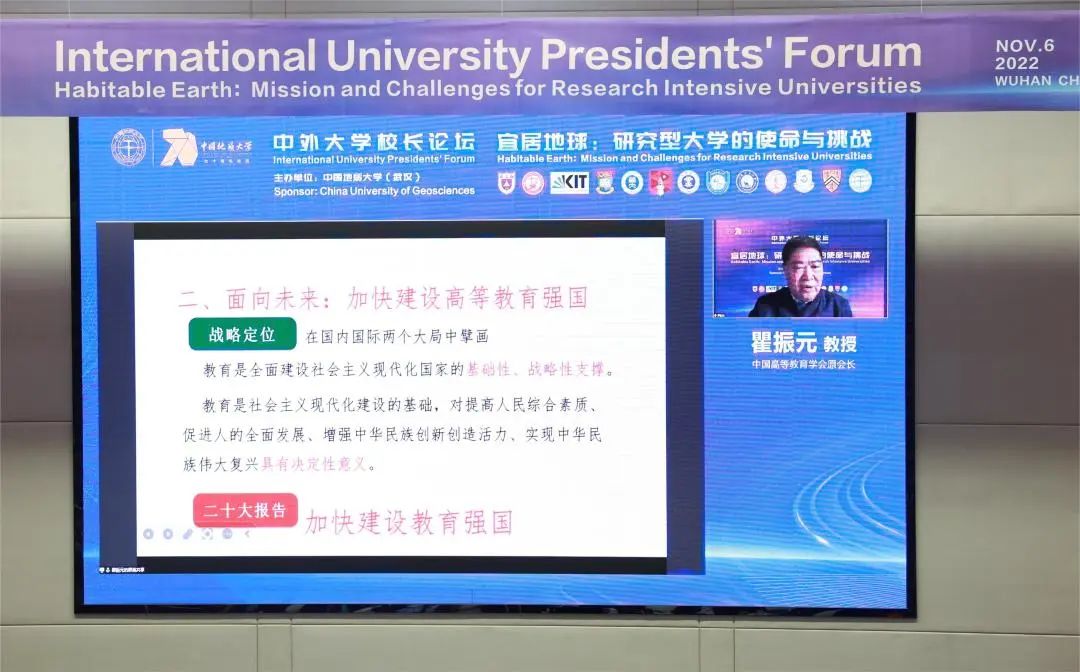 11月6日,中国地质大学(武汉)70周年校庆系列活动——“中外大学校长论坛”通过线上线下结合的方式在学校国际会议中心举行。本次论坛的主题是“宜居地球:研究型大学的使命与挑战”,探讨宜居地球的重大挑战、研究型大学教育的使命担当、人与自然的和谐共生。论坛由南京大学常务副校长谈哲敏院士主持,20余万人次在线参加论坛。