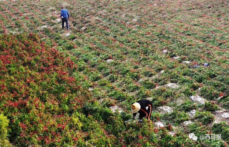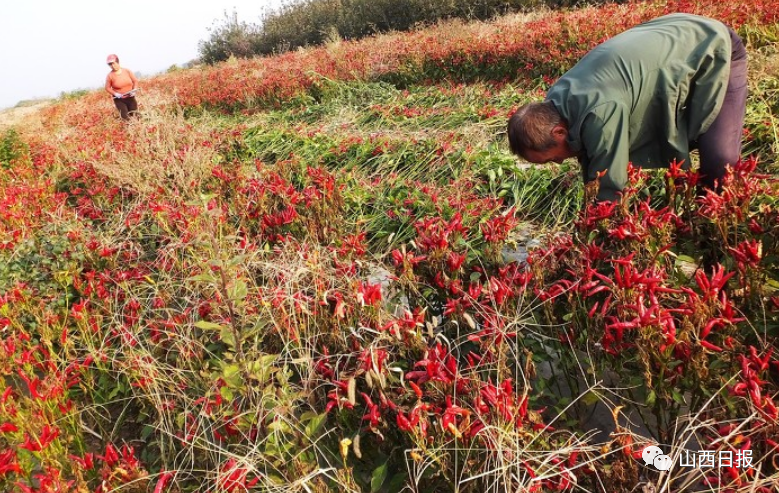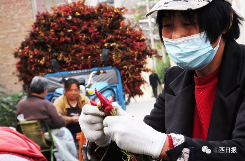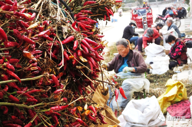 新绛县三泉镇古堆村,男女老少抢摘辣椒销售忙。