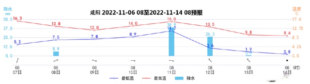 9-11日全省气温略有回升,最低气温陕北地区回升到7℃以上、关中14℃以上、陕南13℃以上。