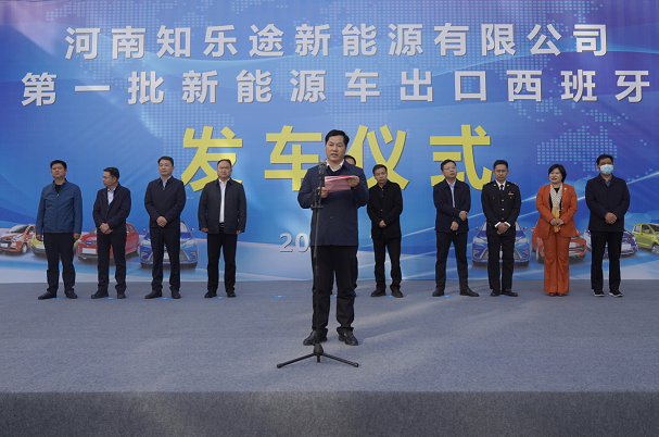 11月5日,由驻马店职业技术学院科技园产业学院及黄淮实验室与河南知乐途新能源有限公司合作自主研发的新能源车第一批出口西班牙发车仪式隆重举行。