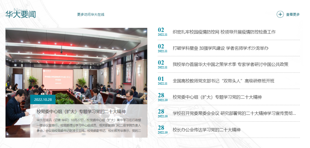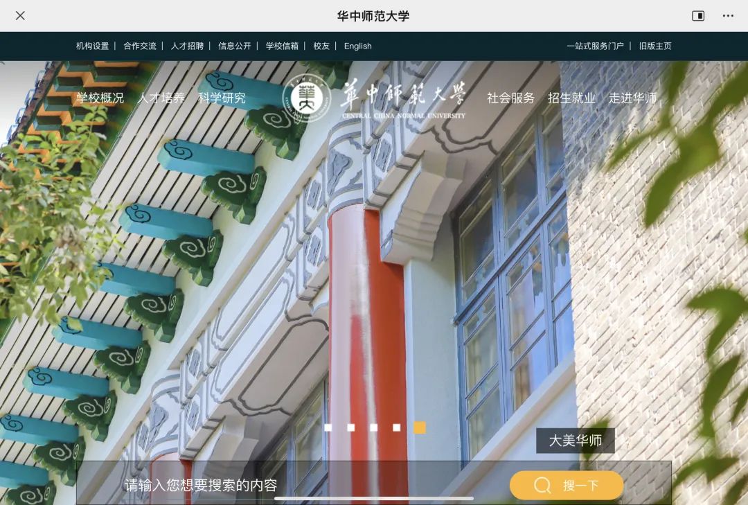 本次主页改版工作于今年2月启动,在深入师生充分调研和广泛征求意见的基础上,从信息架构、内容发布、功能体验、视觉设计等方面,对学校中英文主页进行了改版升级。致力于将主页建设成为发布好校园信息、讲述好华师故事、展示好学校形象的重要宣传阵地。