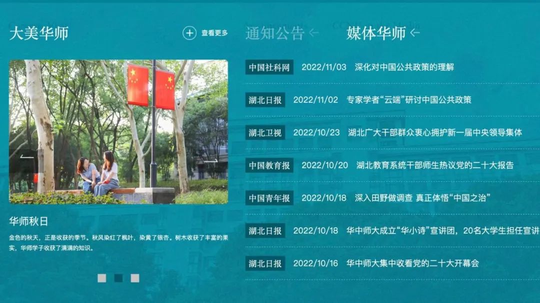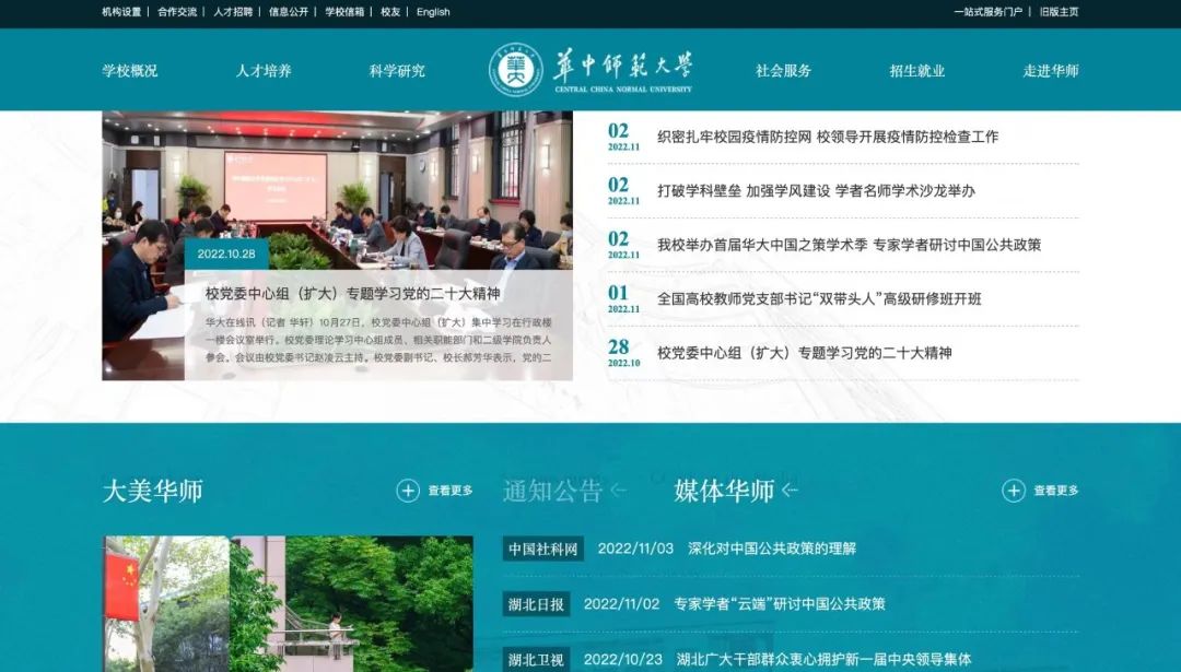 为进一步理顺主页建设管理机制,在改版过程中同步将《华中师范大学中文主页建设管理办法》修订为《华中师范大学主页建设管理实施细则》,让主页管理有章可循、有规可依。本次主页改版作为融媒体中心软件系统建设的组成部分,此后投稿皆需通过融媒体中心软件系统平台进行递送。融媒体中心软件系统登录地址:http://rmt.ccnu.edu.cn/portal/