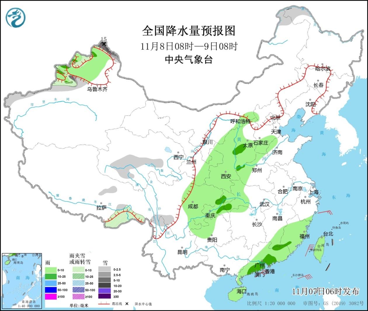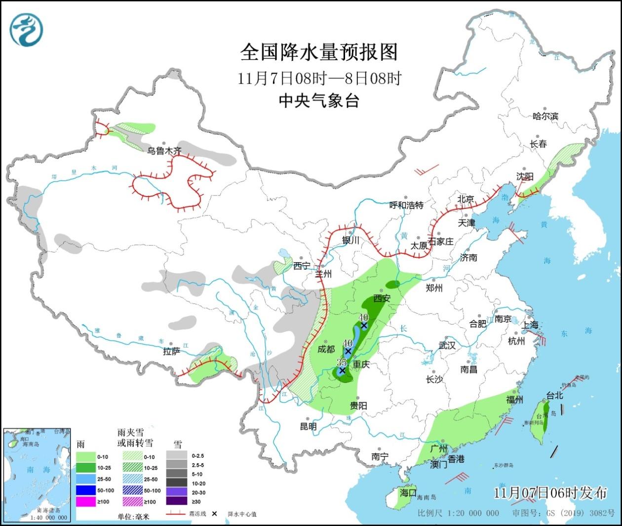 预计7-8日,四川东部、贵州西北部、重庆西部、陕西中部和南部等地部分地区有小到中雨,其中,四川东部、重庆西部等地部分地区有大雨。8-9日,受冷空气影响,新疆北部和南疆西部山区等地部分地区有小到中雪或雨夹雪,其中,新疆北疆北部和伊犁河谷等地部分地区有大到暴雪。降水过后,新疆北部气温将下降4~8℃,局地降温可超过10℃。