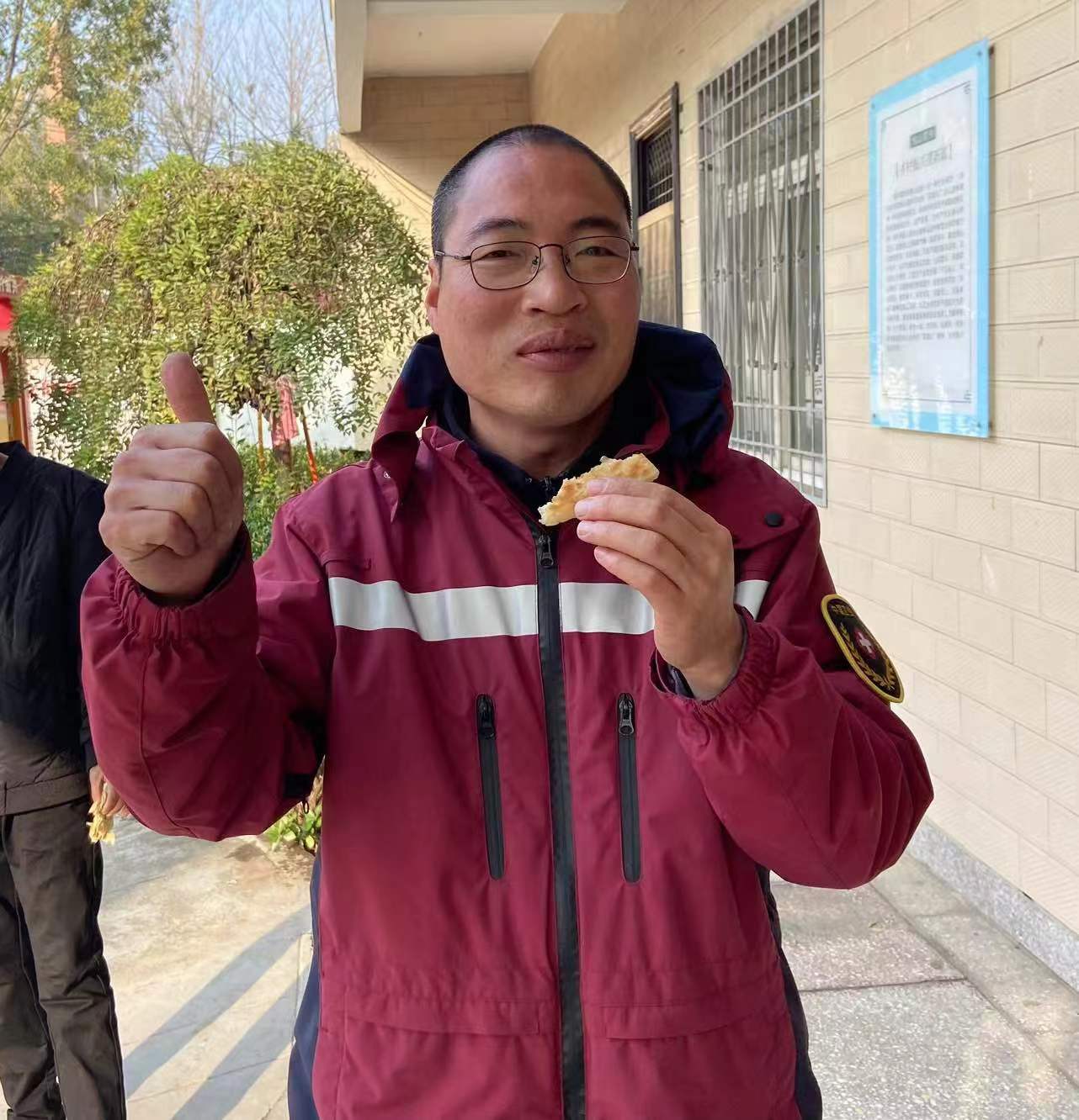 “上次做的是胡辣汤和油条,这次是油饼,每次他们都夸俺的厨艺好,下一次俺准备给他们做拿手的烙馍卷辣椒,不管以后的天有多冷,只要他们愿意吃俺做的饭,俺就会一直做下去。”郭向丽激动地说道。