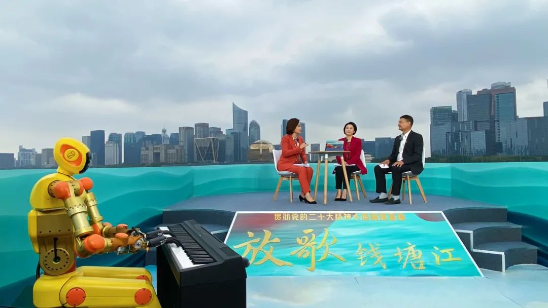 浙江广电集团大手笔创新性开展党的二十大精神学习宣传贯彻报道,策划推出大型融媒直播“放歌”系列,紧扣“思想如水,水润大地”的策划主线,一艘逐梦前行的思想寻访船“放歌号”,沿着钱塘江、瓯江、大运河等水系,循足迹、悟思想、看变化、畅想发展新图景,展现中国式现代化浙江篇章。
