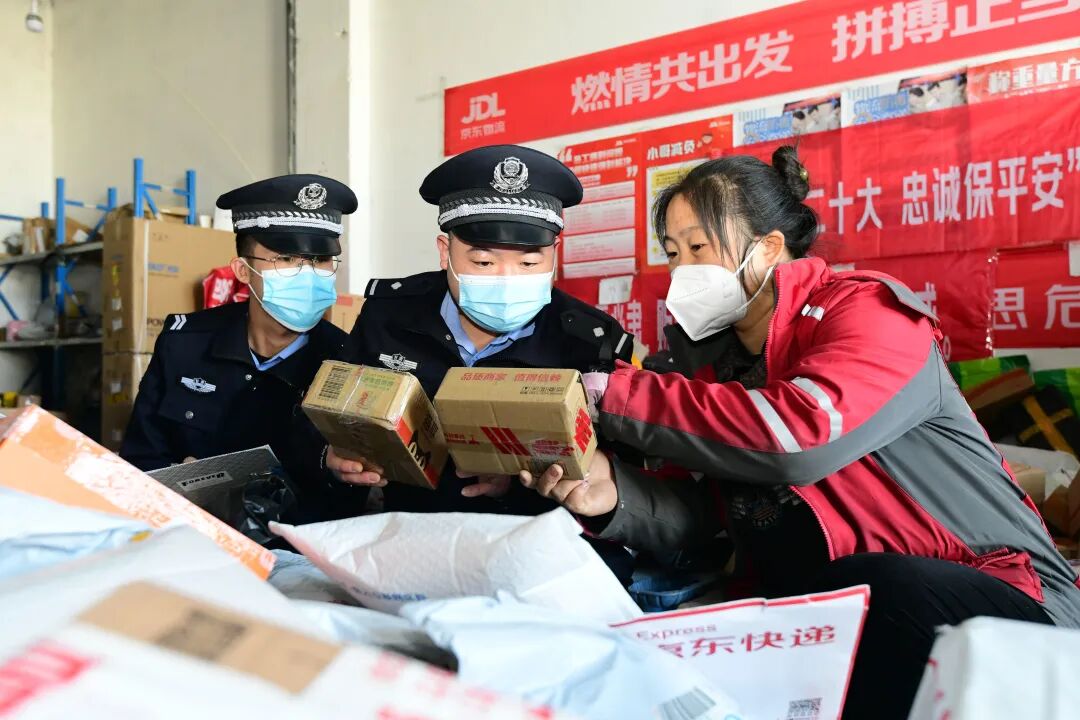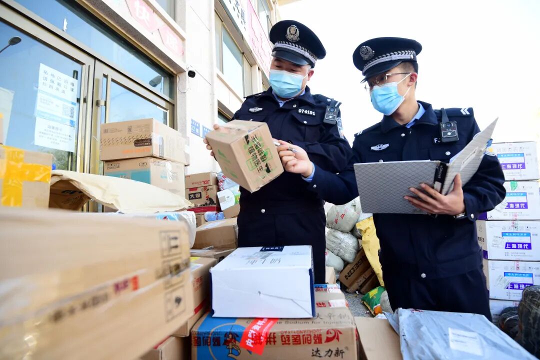 “双十一”即将来临,为阻断寄递物流行业疫情传播风险,近日,临泽县公安局开发区派出所民辅警对全县寄递物流业开展拉网式疫情防控专项检查,重点对寄递物流行业场所实名登记台账、邮件收寄验视制度等情况进行检查。(安学海 摄)
