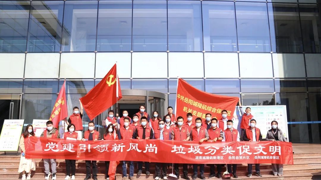 岳阳广电全媒体讯(记者 毛迎燕)11月4日,城陵矶新港区党群工作部联合团区委、新港区总工会开展以“党建引领新风尚,垃圾分类促文明”为主题的宣传实践活动,旨在切实发挥党组织党建引领作用,扎实有效推进城陵矶新港区生活垃圾分类工作。
