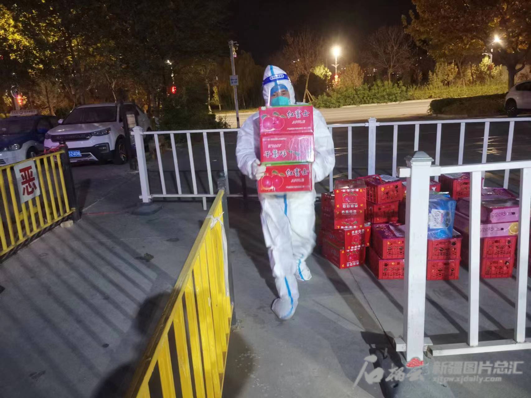 “大家不要着急,物资到门口了,消杀后志愿者会及时给你们送到家。”11月3日,库尔勒市铁克其乡沙南社区幸福家园小区,志愿者李宁一边整理物资,一边在居民微信群告诉采购物资的居民。