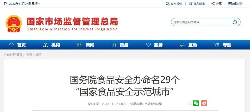 “国家食品安全示范城市”