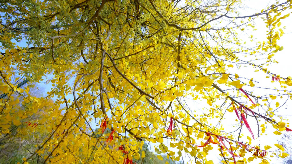 在泰安玉泉寺,金黄的银杏叶,伴着秋风,好像是一只只金蝶在院落里翩翩起舞,秋高气爽碧云天,层林尽染映斑斓。柿红杏黄润秋色,踏秋寻景品万千。