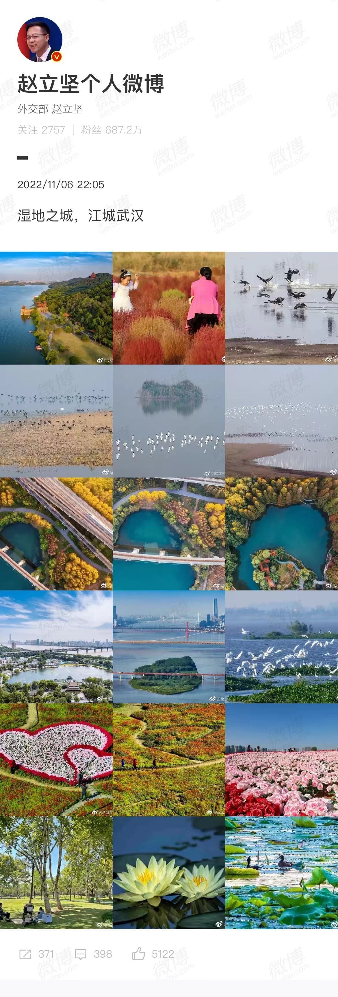 赵立坚点赞《湿地公约》第十四届缔约方大会,并拍了拍武汉 详见>>