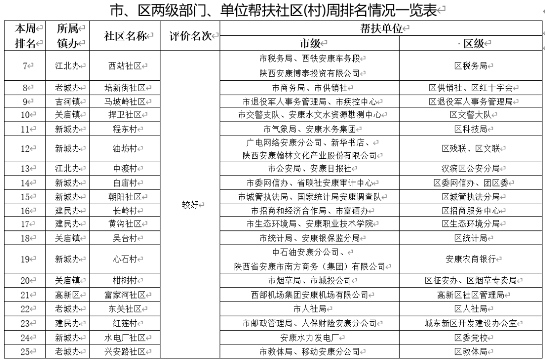 本周排名聚焦问题整改和实地测评赋分,按照百分制,其中行业实测点位(交通场站、小区和背街小巷)达标情况占70分;市区督导组反馈问题整改、未成建设达标情况占30分,依据赋分结果,划分等次。95分以上(含95分)为“好”等次;90-94分(含90分)为“较好”等次;90分以下为“ 一般”等次。现就测评排名情况通报如下: