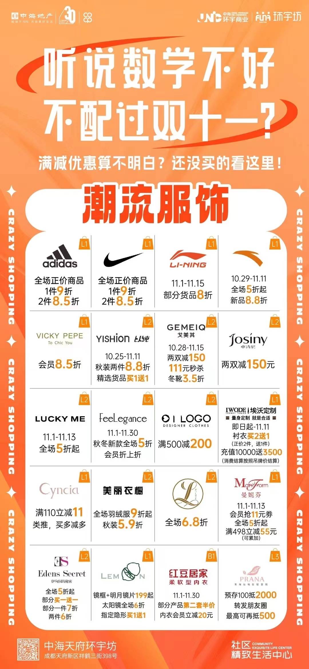 双十一开始,不仅是各大电商平台的狂欢节,在成都的各大商场里,也有着许多不错的优惠。