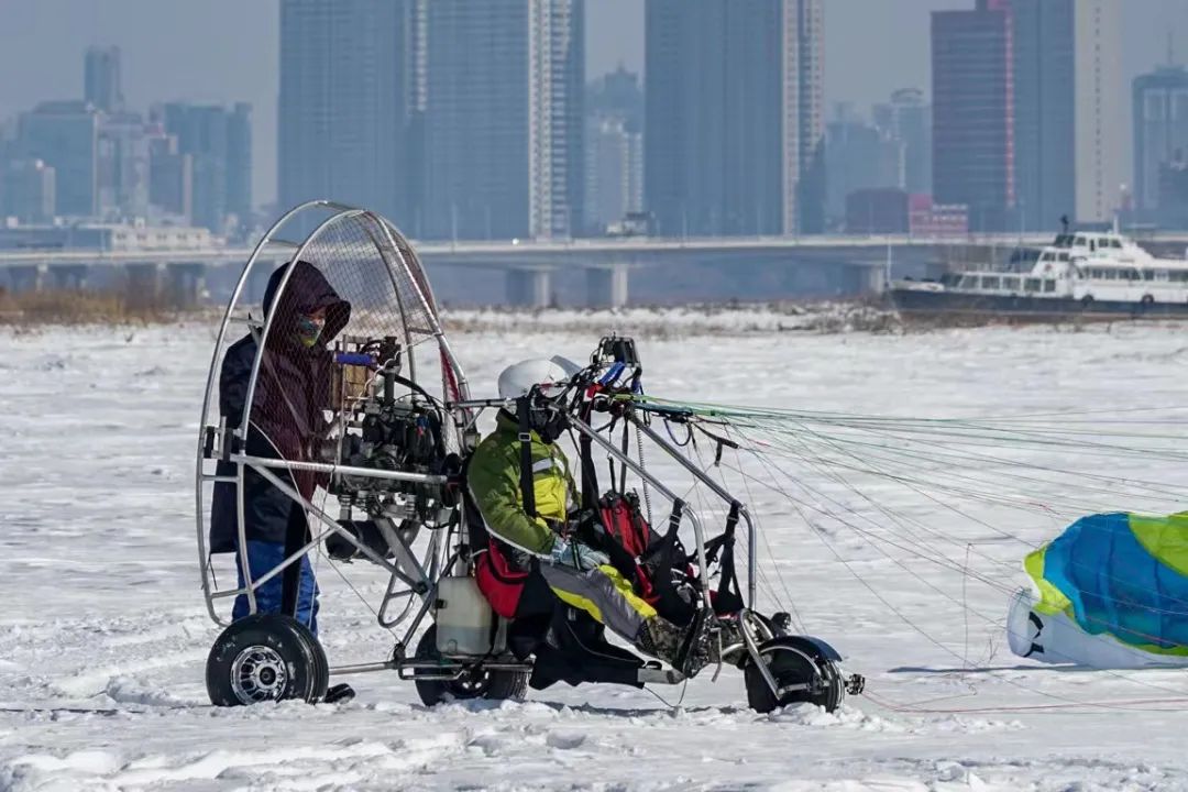 追寻逐梦之旅,冰雪航空体育运动成为一种新风尚。据张轩介绍,在他冬季飞动力伞的几年里,找他约飞的朋友逐年递增,并且还有不少外地游客。2021年冬天,一位广州“90后”女孩张慧娴在短视频抖音平台看到了张轩和他的故事,因为自己从未看到过厚厚的冰雪,她便从广州不远千里来到哈尔滨,专程找到张轩,帮忙圆她这个在冬季上空看冰城冰雪的梦想。张轩带着她从松花江公路大桥附近飞到太阳岛的斜拉桥,然后转飞到冰雪大世界,此次旅程让这个南方女孩铭记于心。“好多朋友现在就等着冬天来哈尔滨体验飞的感觉了,”张轩表示,像张慧娴这样的外地朋友现在冬季来哈尔滨约飞的不在少数,在张轩的短视频平台里,经常能收到来自全国各地朋友询问的留言,“现在,已经有几位南方朋友跟我约定好了,就等着冬天来到哈尔滨,从另一视角,看不一样的雪景,”张轩说。