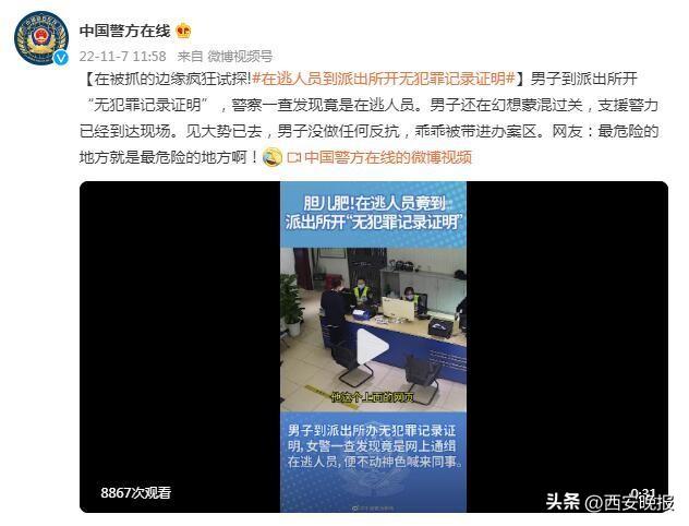 男子到派出所开“无犯罪记录证明”,警察一查发现竟是在逃人员。男子还在幻想蒙混过关,支援警力已经到达现场。见大势已去,男子没做任何反抗,乖乖被带进办案区。网友:最危险的地方就是最危险的地方啊!