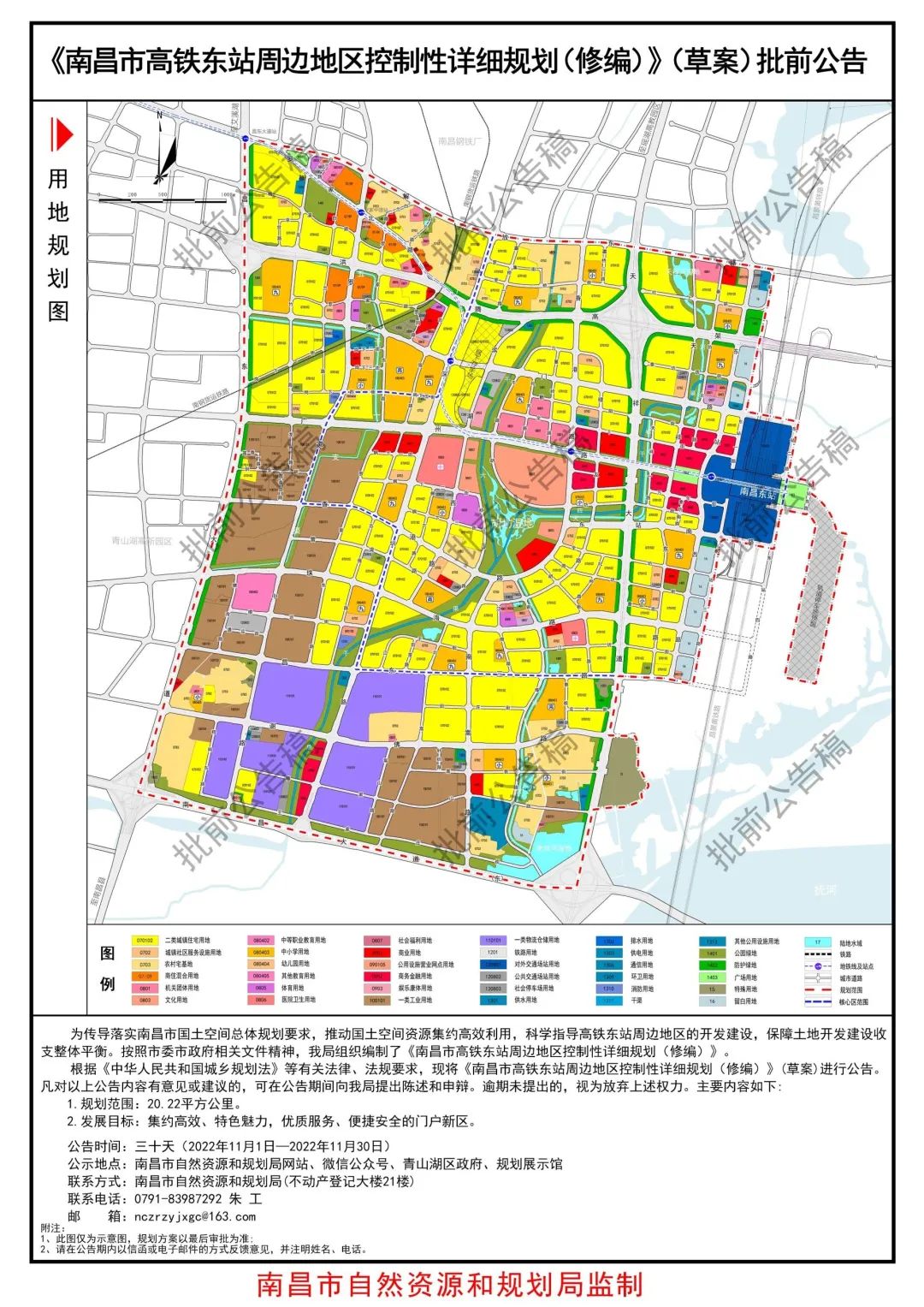 从用地规划图看,高铁东站周边地区规划范围为昌东大道以东,昌南大道以北,解放东路以南,东站二路以东区域,规划范围20.22平方公里。