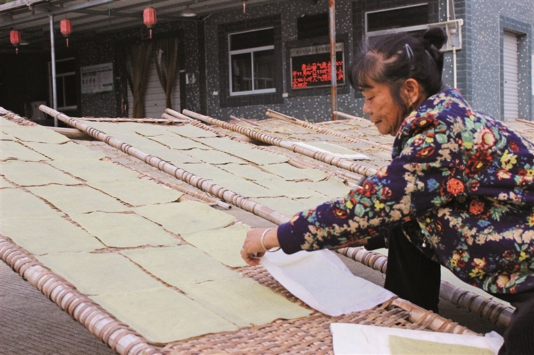 据了解,杨家岙村有着二十多年的番薯片制作历史,素有“炒番薯片村”之称,但由于制作过程繁杂,目前只有十来户村民还在坚持这门老手艺,而这份农家味道也受到了不少游客和市民的青睐。该村事务员翁迎蕾介绍,番薯片都是纯手工制作的,比较绿色、健康,在市场上十分走俏,同时也给村民们带来了可观的收入。