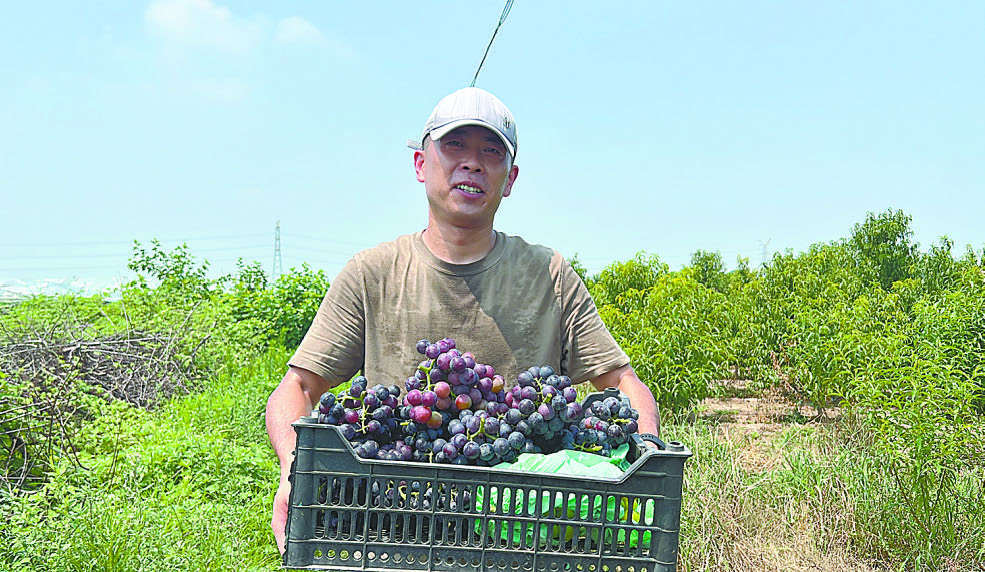 为爱心助农的市民采摘完葡萄,冯达凯已汗流浃背。