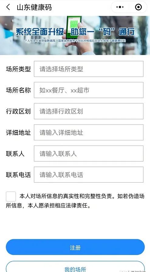解答: 场所的管理者在山东健康码小程序中的“场所码申请”中填写场所及管理者信息后,注册生成“场所码”,并张贴使用。