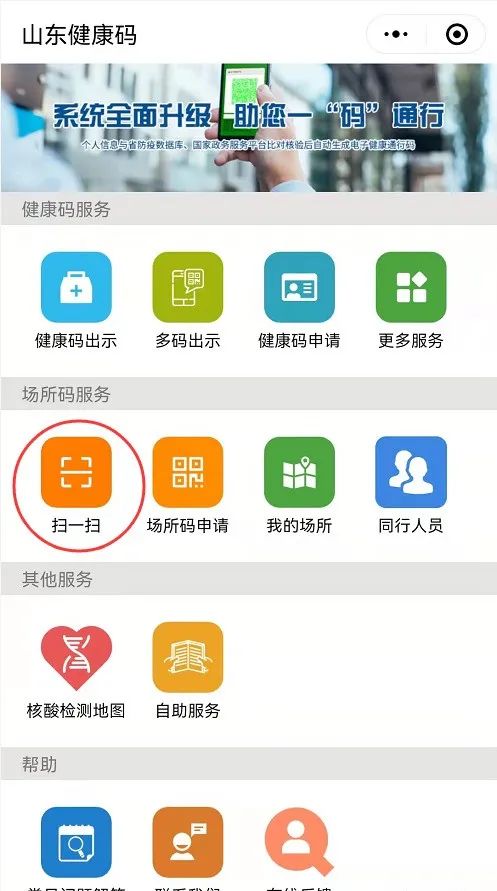 解答: 进入重点场所的人员使用山东健康码微信小程序、支付宝小程序和爱山东中的“扫一扫”扫描“场所码”,完成进入自动登记并自动展示出行人健康码。