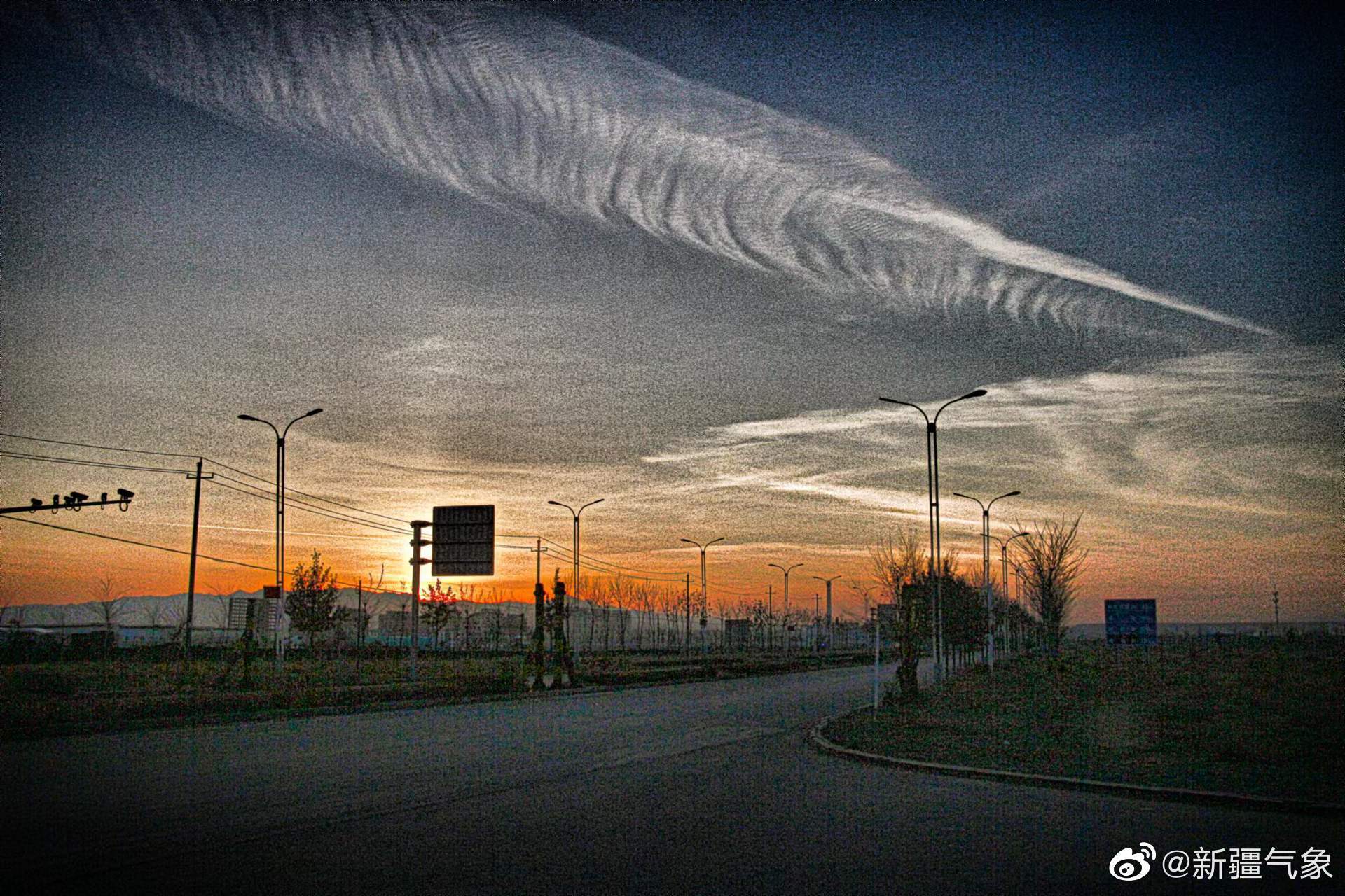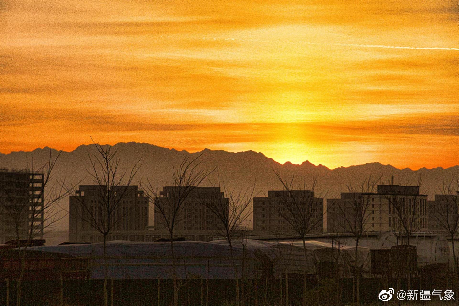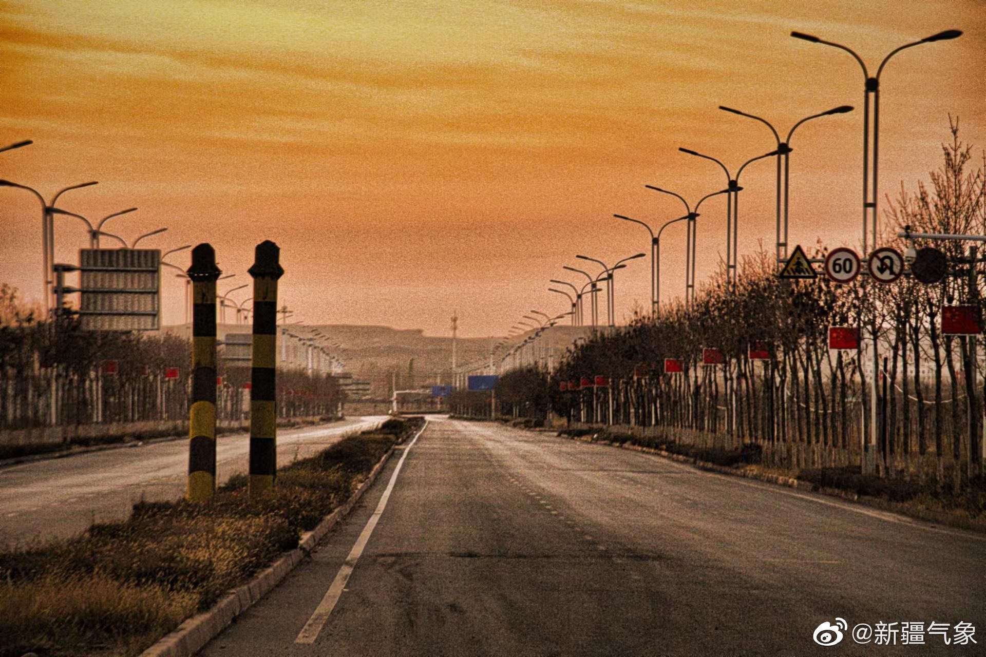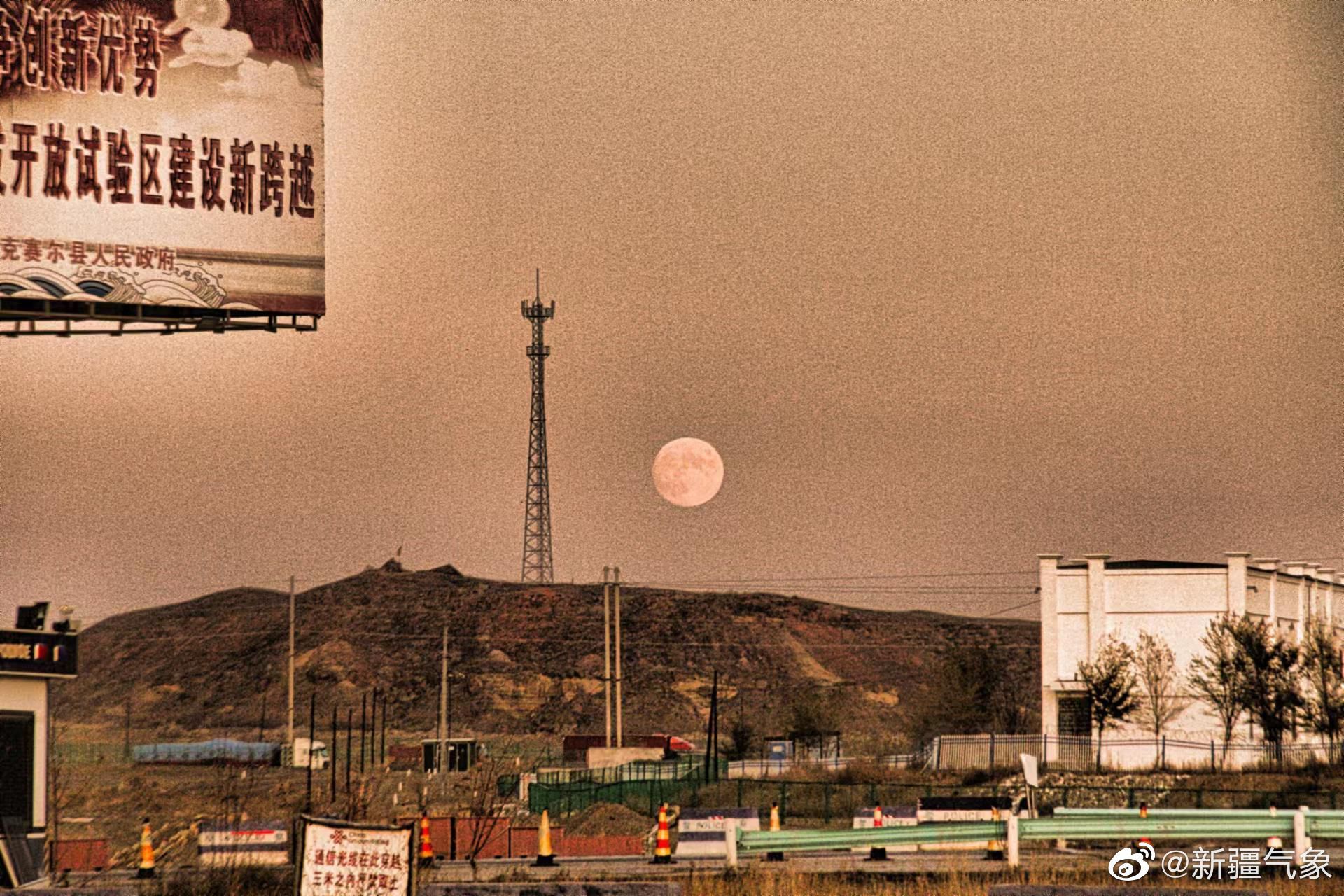 夕阳西下时,天空像被抹上了一层橘红色的颜料,半个天空都是橘红色的,像是一条美丽轻柔的绸带。月亮也在这个时刻慵懒随意又恰到好处的出现在天边。坐标:新疆和布克赛尔县(图/文: 董峰 王海燕)