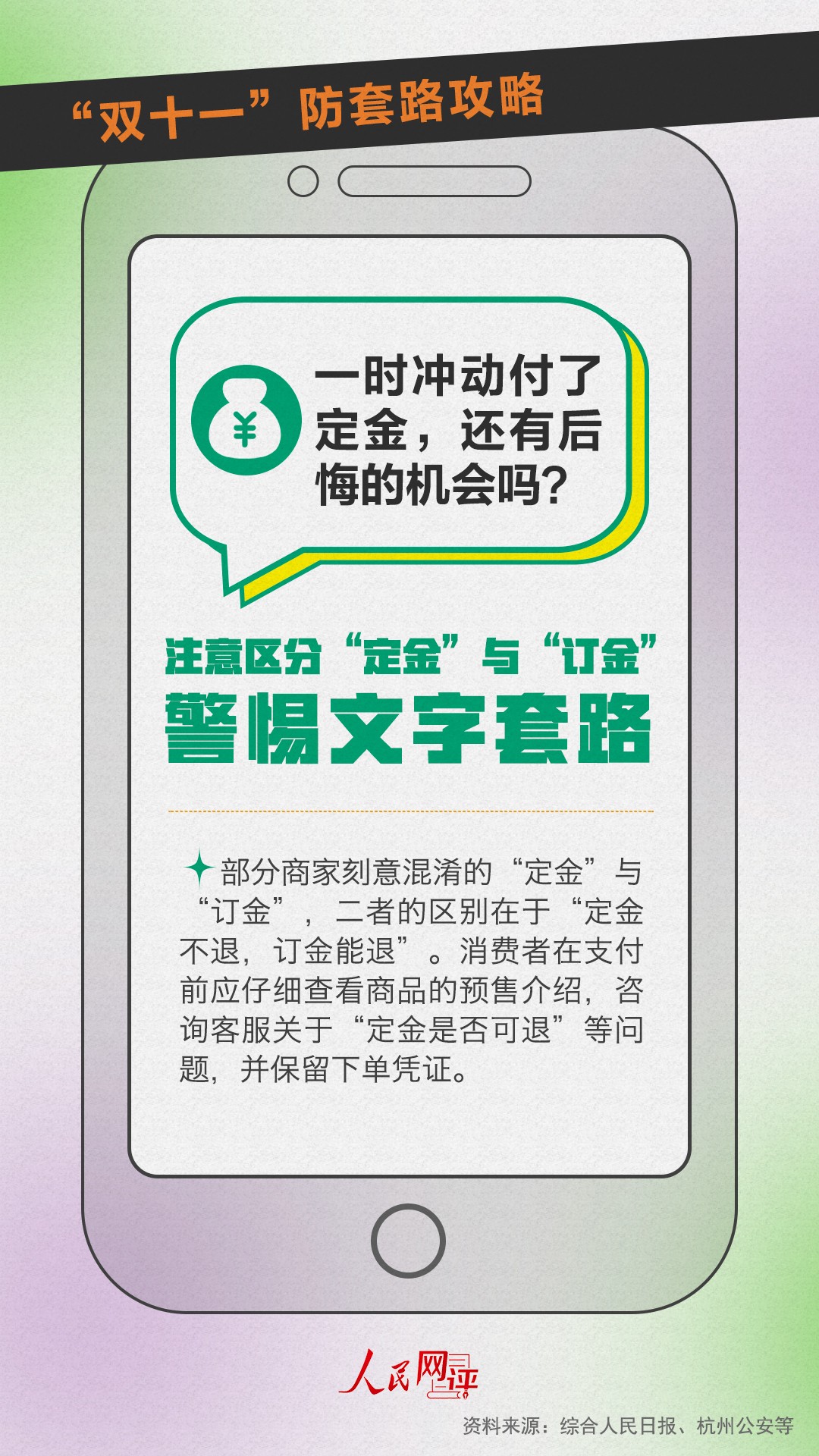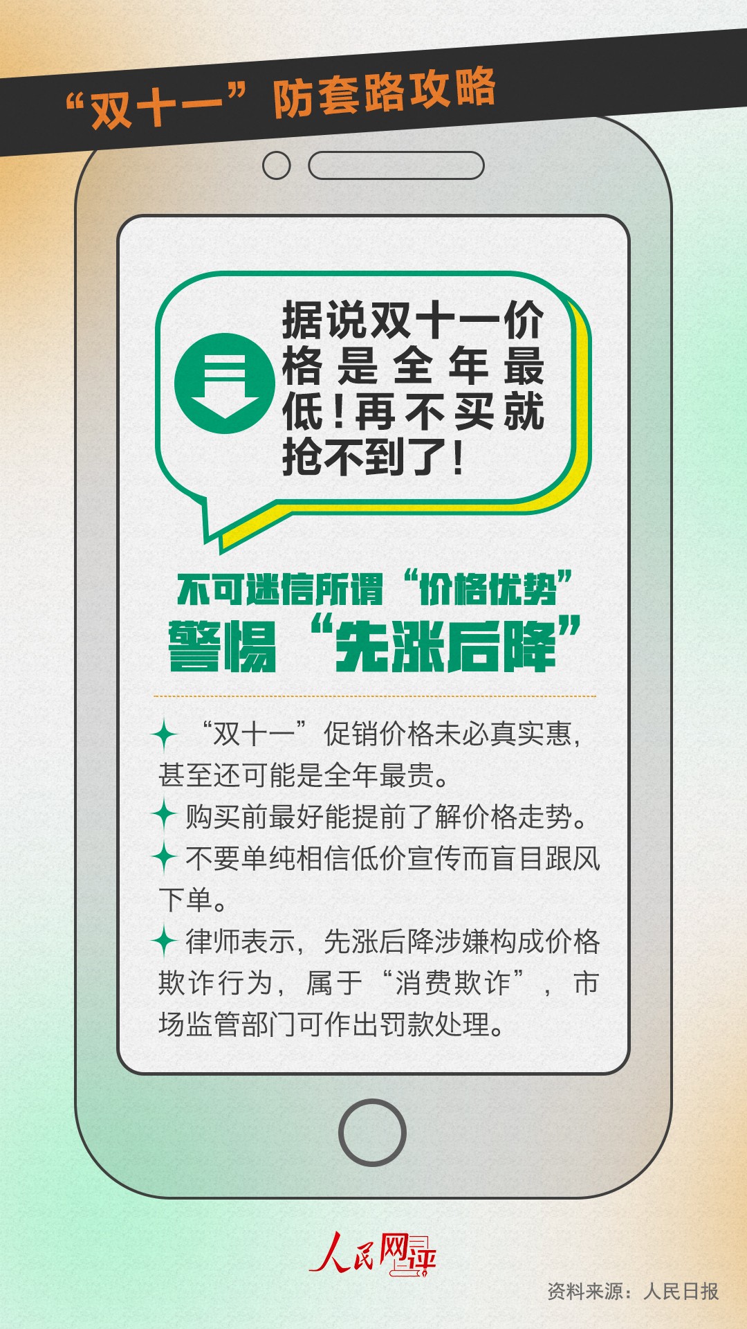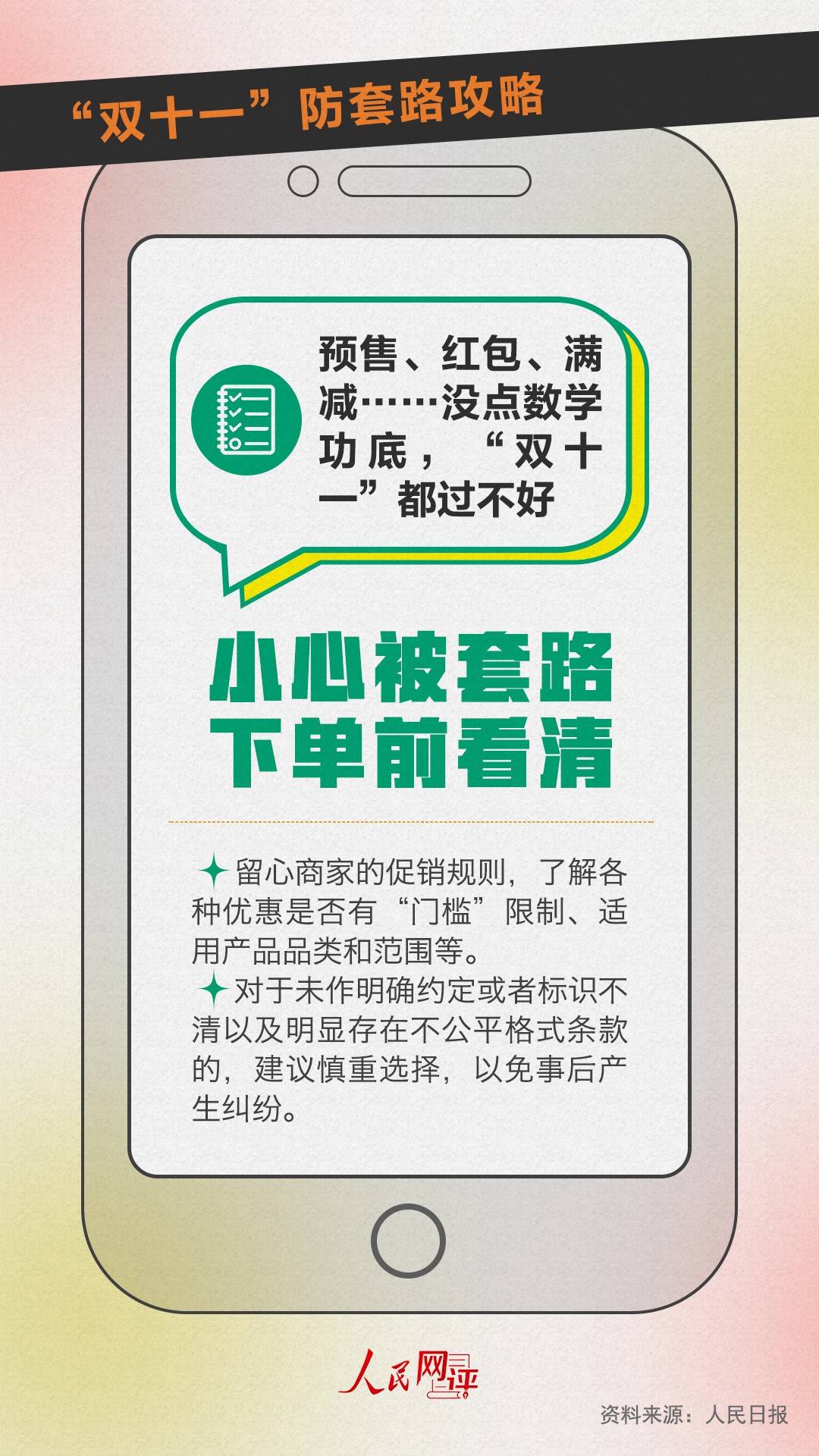 一年一度的“双十一”正在火热进行中,然而,一些平台、商家的花式套路,各种优惠规则,让人很是“心累”,有不少商家甚至盯上了网购经验不足的中年网友。“定金”“订金”要分清,价格“先涨后降”要明察,促销短信要甄别。戳大图↓↓查看“双十一”防套路攻略,理性购物,轻松消费。快转给爸妈吧。