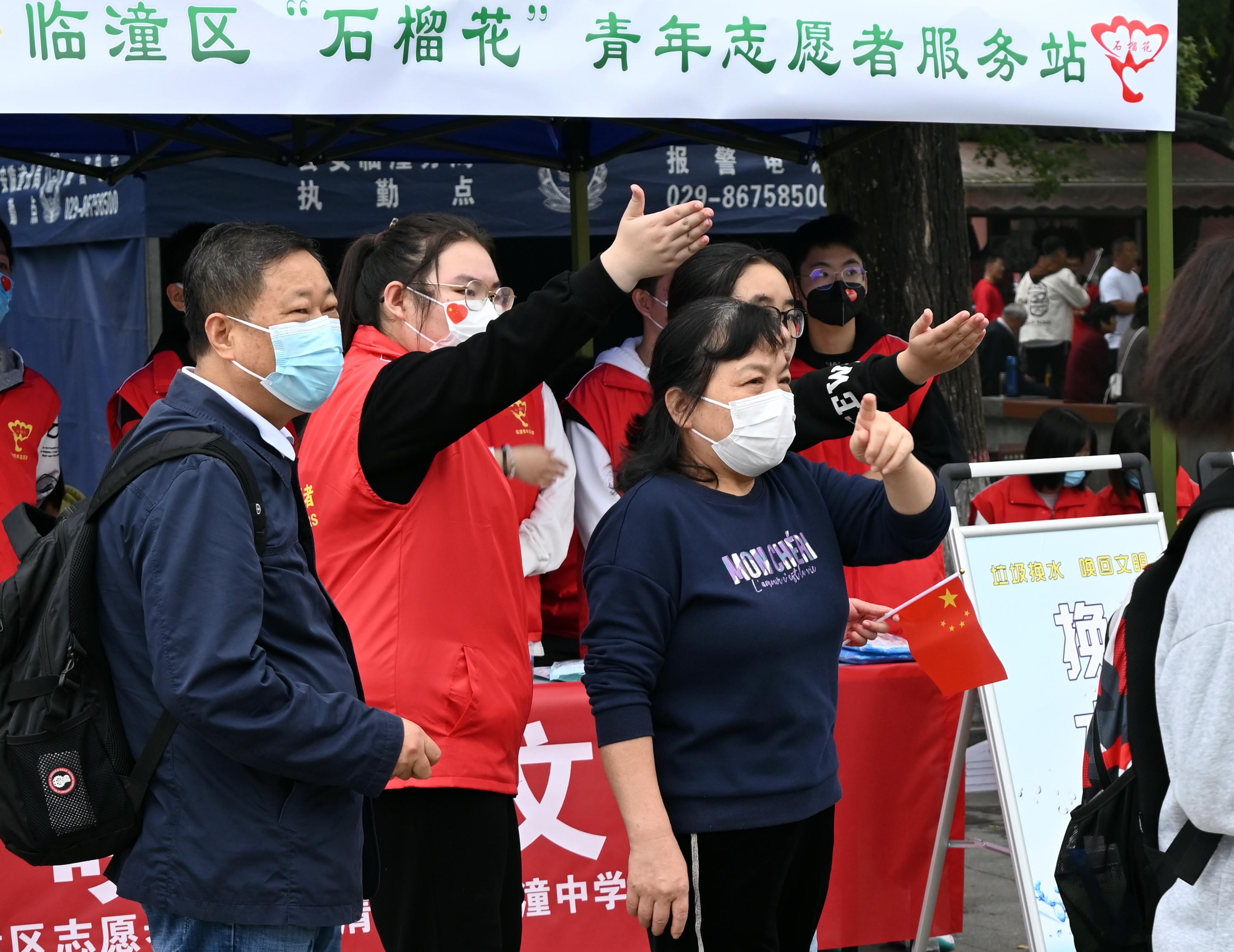 “姑娘,是不是我这个蛋糕盒子可以免费换水、换雨衣?”“对,这里就可以。”10月3日,在兵马俑景区门前,一名志愿者正引导游客参加“垃圾换水·唤回文明”活动。“游客把垃圾扔进对应的垃圾桶里,就可以在‘石榴花’志愿服务点免费兑换矿泉水、国旗贴纸、雨衣等礼品,从而强化他们的文明意识。”共青团西安临潼区委工作人员李奔说。