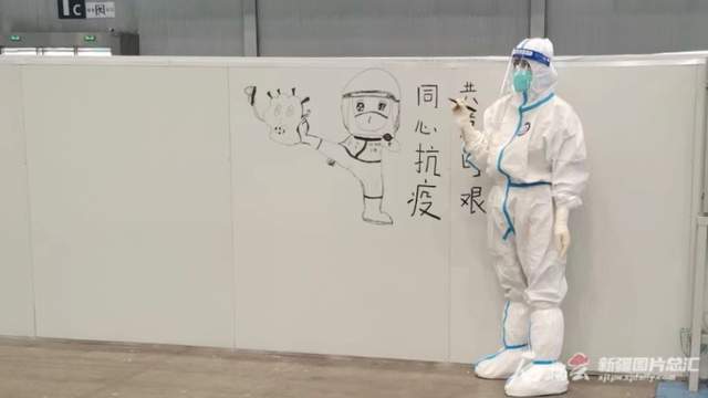 在她的带动下,河南援疆医疗队的队友们也加入到漫画创作队伍中。围挡白板的色彩不再单调,很多患者甚至期待新的抗疫主题漫画。