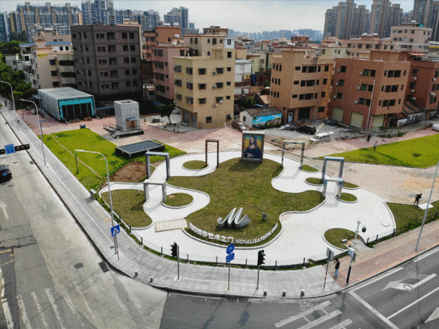 蒙娜丽莎艺术之门将蒙娜丽莎集团的特色陶瓷产品融入到整体设计中,打造出一幅蒙娜丽莎肖像画像与6个蒙娜丽莎岩板创意拱门,以“艺术之门”的创意造型营造开放、自信、活力、美好的新时尚文化聚集区。