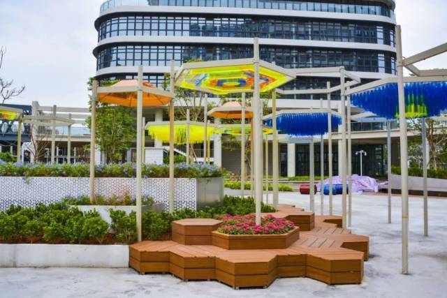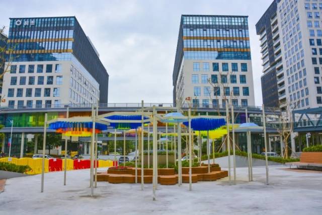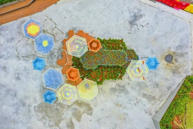 海逸产业社区公园以极具潮流感的集装箱创意集市、儿童天地、宠物乐园、潮流运动场四大主题区域,营造出一个“色彩王国”。