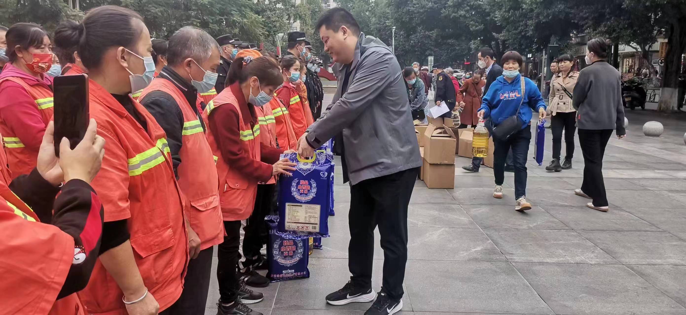 为把党工委办事处的关心、关爱带给一线工作人员,11月3日,宜宾市翠屏区合江门街道在中山街钟鼓楼广场集中慰问了城管队员和环卫工人等一线工作人员代表。