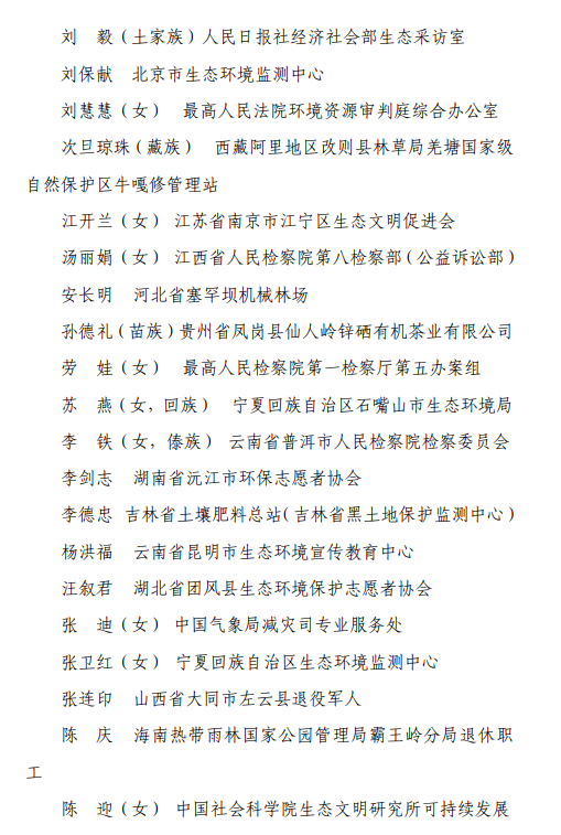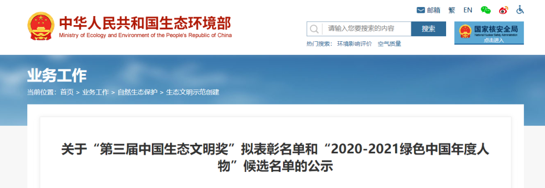 “第三届中国生态文明奖”拟表彰名单和“2020-2021绿色中国年度人物”候选名单的公示