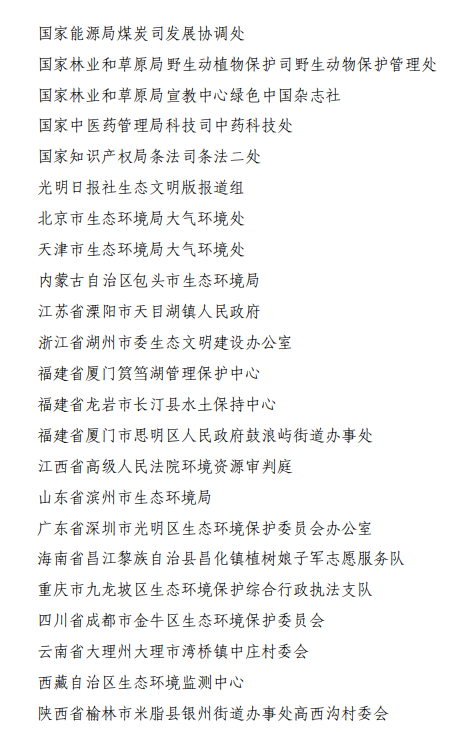 第三届中国生态文明奖先进集体拟表彰名单